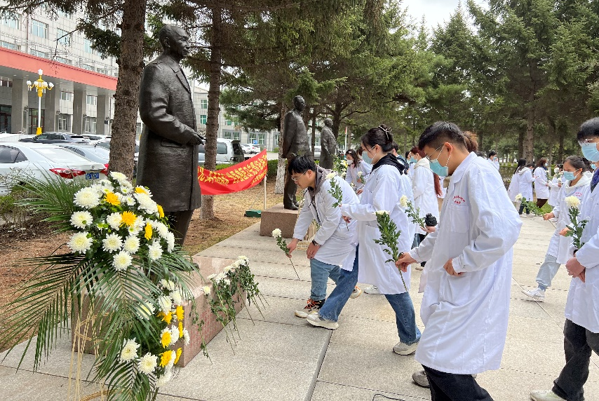 最后,老师同学先后向兽医先贤雕像们敬献鲜花,以表达诚挚的敬意,本次活动圆满结束。