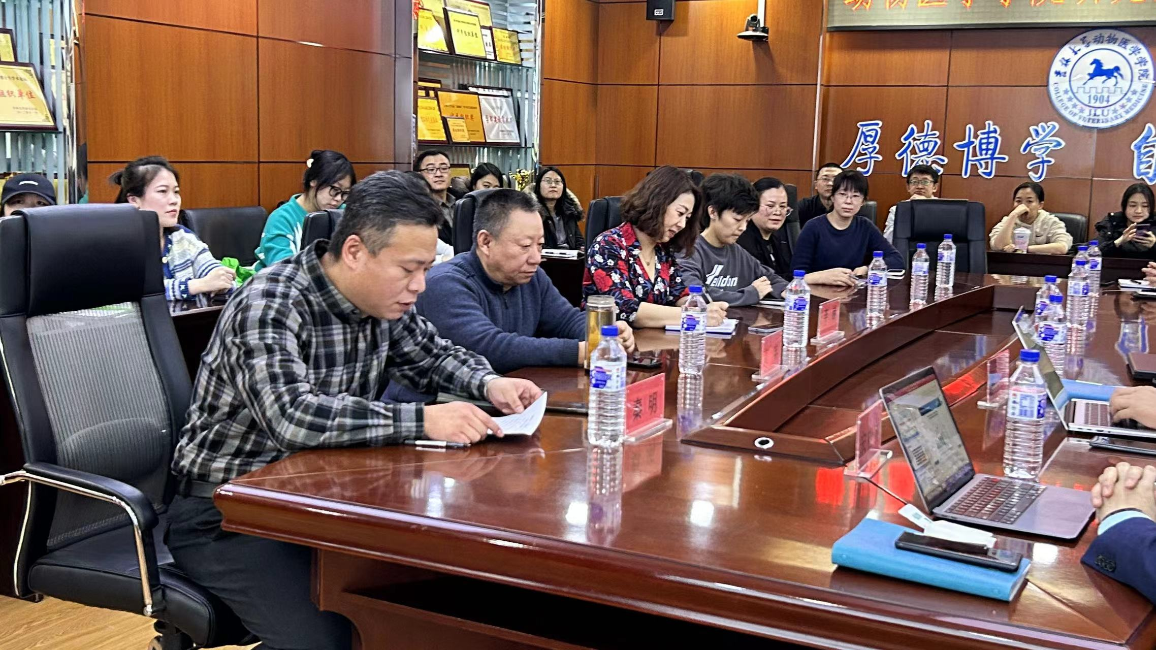 会议伊始,宋松林董事首先从公司规模布局、已有的专利、研究成果等方面对吉林正业生物制品股份有限公司进行了一个简单的介绍。接着宋松林董事讲解了吉林正业专业学位研究生培养支撑条件,宋松林董事表示吉林正业生物制品股份有限公司具有先进的实验室,能够进行一些高端的试验,借助正业生物一流的实验室,可以给教师提供教学平台,为学生提供试验平台,同时也感谢学院几年来为公司的发展输入了专业人才,加强了双方的了解和沟通。