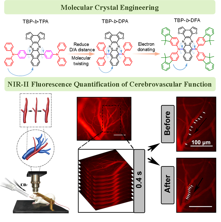近红外II区荧光成像(NIR-II1000-1700 nm)具有成像穿透深度深、空间分辨率高、信噪比高等优点,在生物成像领域被广泛关注,是近年来研究热点之一。然而,大多数分子设计策略依赖于理论计算结果,难以精确表征分子构型及分子间相互作用