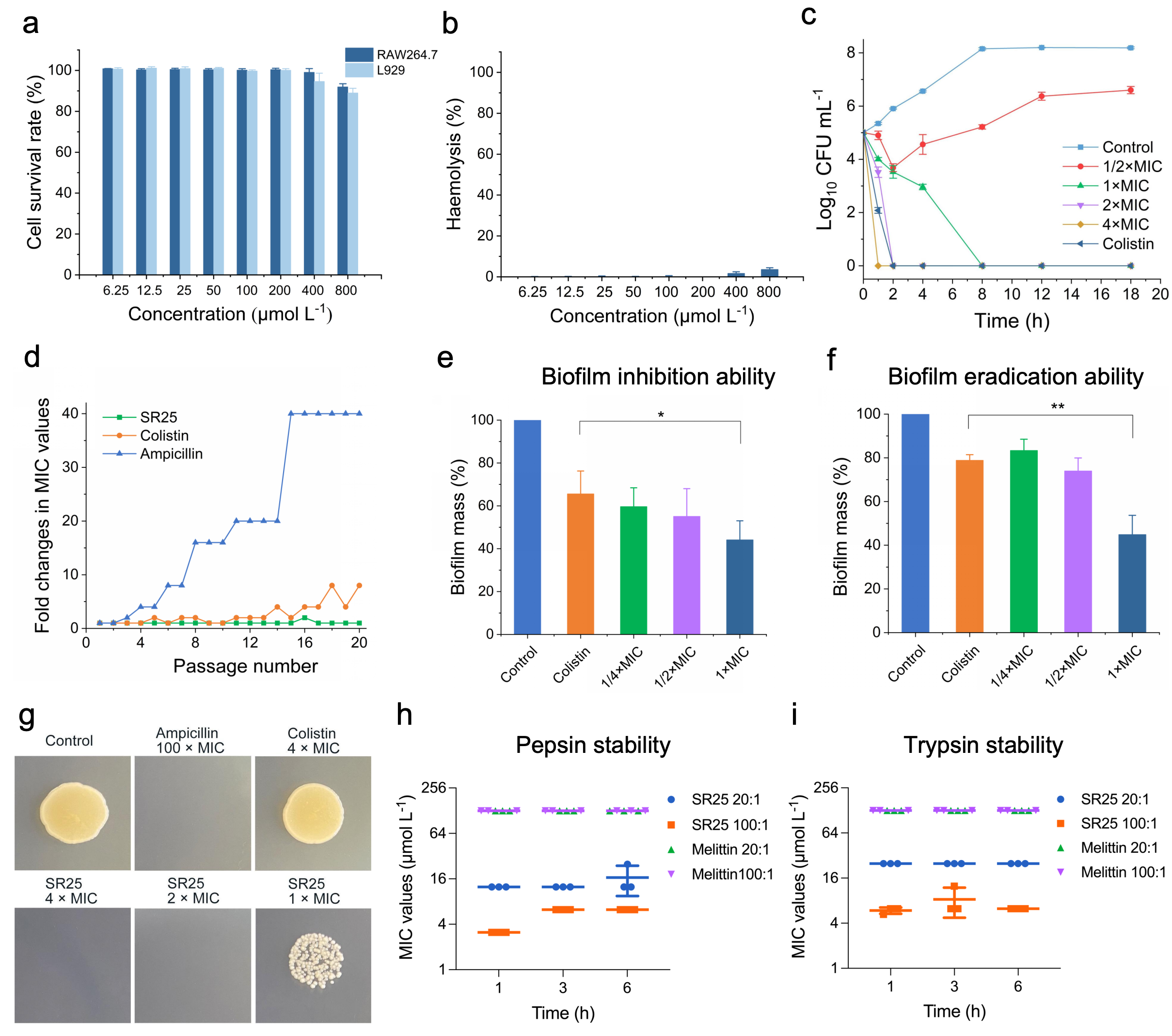 SR25在体外的抗菌活性和生物安全性(图片源自Advanced Science)