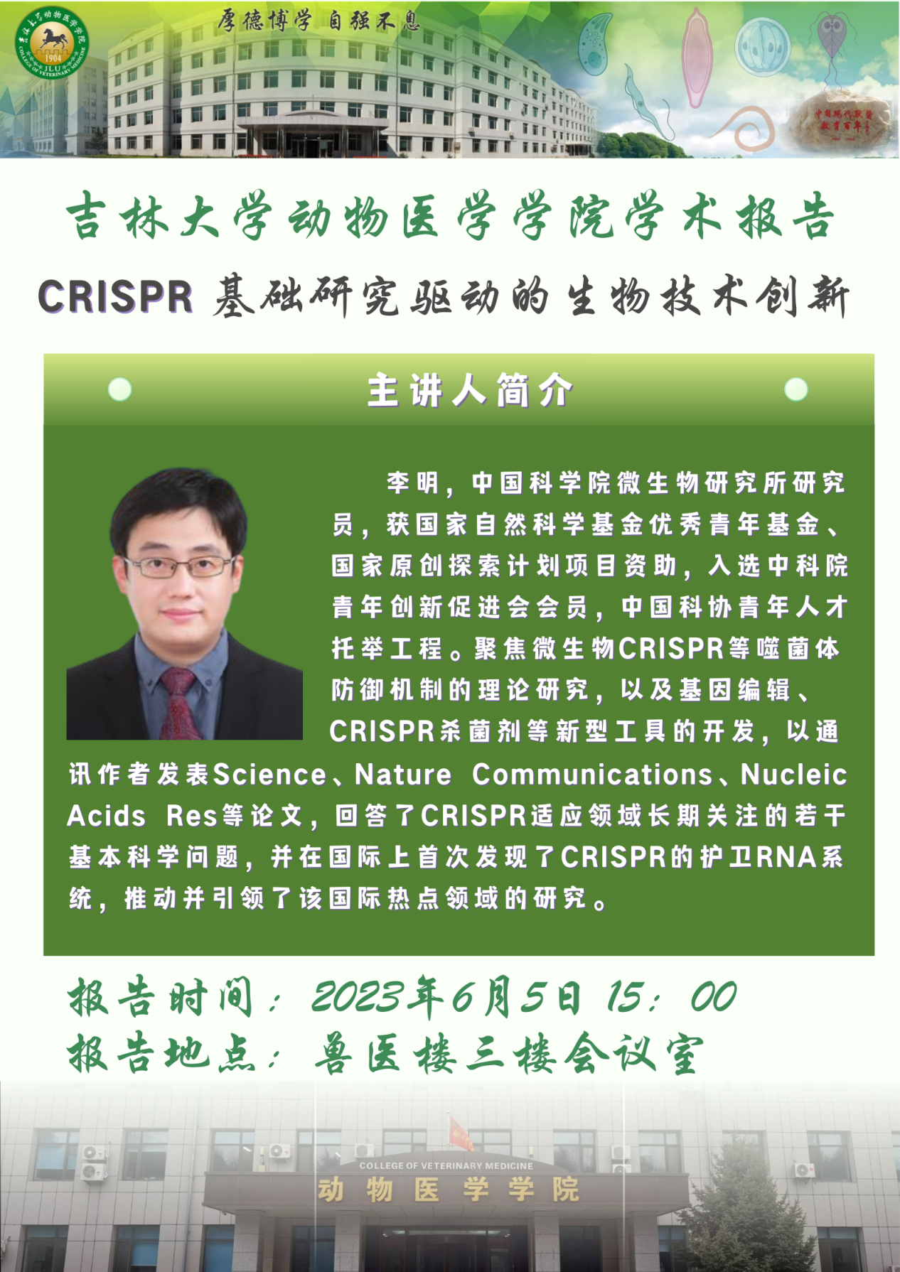 报告题目 CRISPR基础研究驱动的生物技术创新 报告时间 2023年6月5日下午15:00