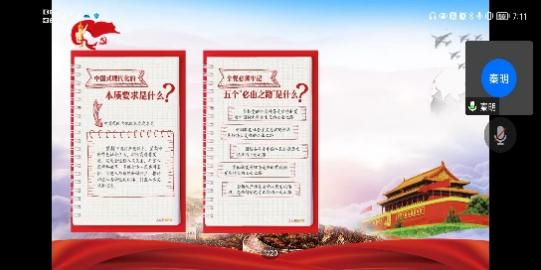 随后,秦明副书记围绕党的二十大报告中的“中国共产党的自我革命”这一重要部分向各位研究生党员介绍了我党全面从严治党、推进自我革命,勇于坚持真理、修正错误,勇于刀刃向内、刮骨疗毒的决心。党的二十大报告指出:“我们党作为世界上最大的马克思主义执政党,要始终赢得人民拥护、巩固长期执政地位,必须时刻保持解决大党独有难题的清醒和坚定。”秦明副书记指出:“全面从严治党取得了历史性、开创性成就,产生了全方位、深层次影响,自我净化、自我完善、自我革新、自我提高能力显著增强。经过不懈努力,党找到了自我革命这一跳出治乱兴衰历史周期率的第二个答案,赢得了全党高度团结统一、走在时代前列、带领人民实现中华民族伟大复兴的历史主动”。此外,副书记还向各位研究生党员普及了毛泽东同志在延安的窑洞里给出的第一个跳出治乱兴衰历史周期率的答案,那就是“只有让人民来监督政府,政府才不敢松懈”。本次党课期间,副书记还特别分享了毛泽东同志在党的不同奋斗时期所写的诗词,并由不同研究生党员朗诵并分享阅读诗词后的心中所想,这让所有研究生党员更加切实的感觉到了毛主席在党的不同发展时期,对于当时局势和党的发展的浓烈情感。