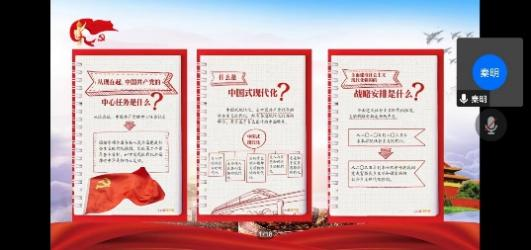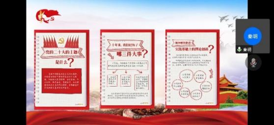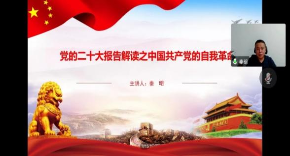 组织全体研究生党支部采取线上方式开展“深入学习党的二十大精神”主题党课,学院八个研究生党支部全体党员和积极分子共190余人参加会议。学院党委副书记、纪委书记秦明同志以“党的二十大报告解读之中国共产党的自我革命”为题讲授党课。