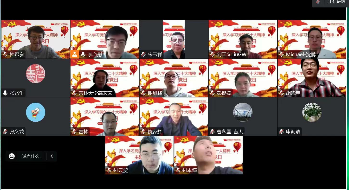 临床兽医学系教工党支部通过线上形式举行“学习贯彻落实党的二十大精神”专题会议,学院党委书记饶家辉为临床兽医学系全体教工讲专题党课,会议由临床兽医学系主任李心慰主持。