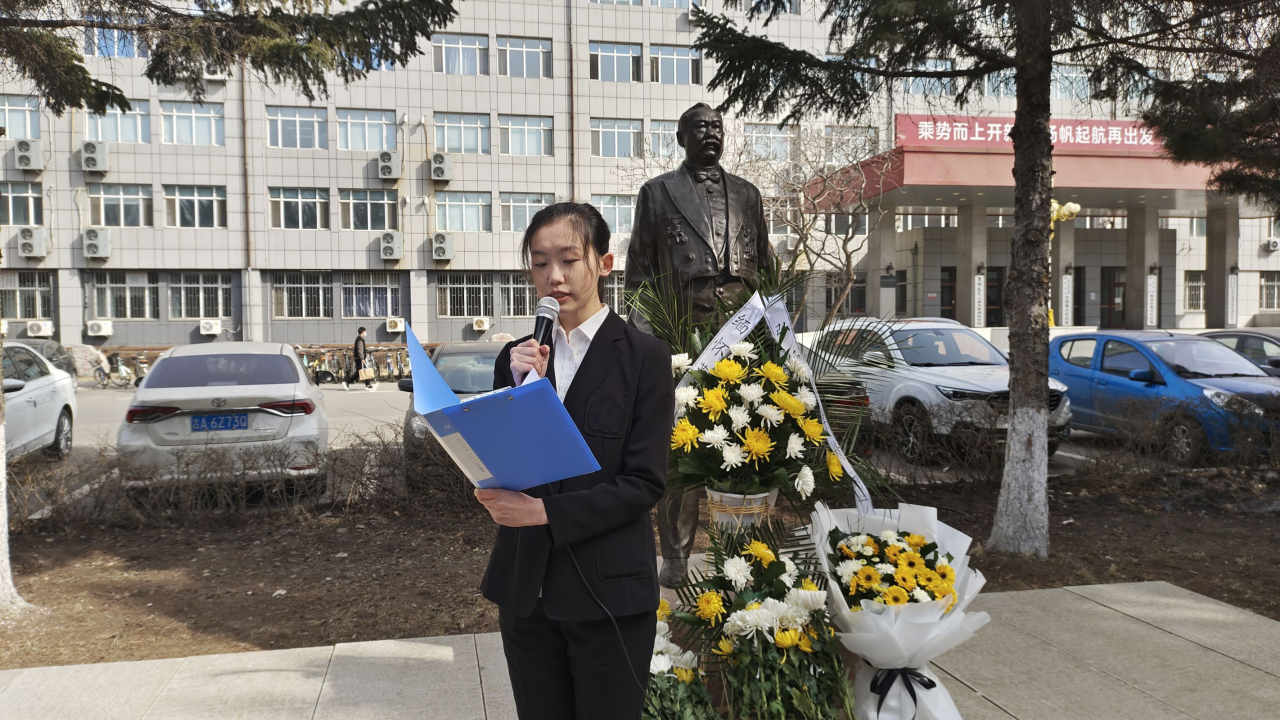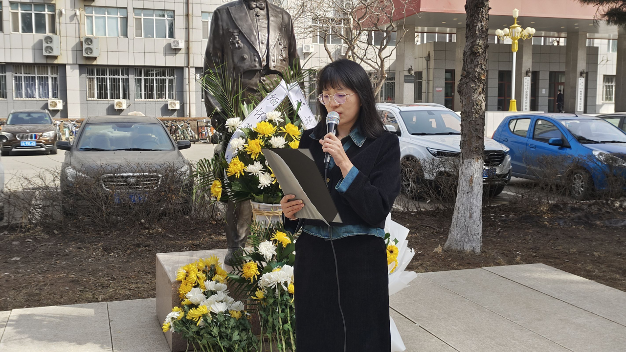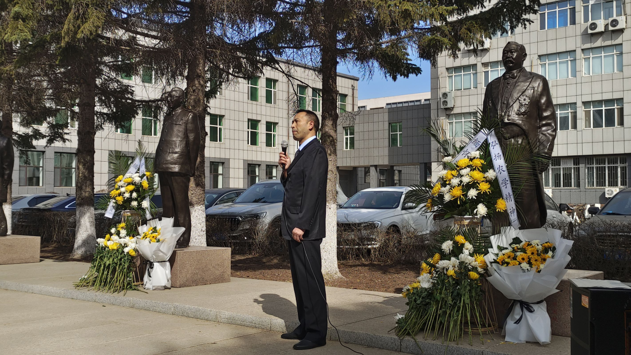 在仪式上,学生代表2022级本科生佟彤发言,号召同学们学习先贤品质,共铸兽医之魂。2023级试验班班主任张海丽教授代表学院教师发言,她表示要继承先贤精神和遗志,赓续红色基因血脉,自强不息,砥砺前行,要以满腔热血,为党育人、为国育才,与同仁共勉,共谱兽医教育之华章。