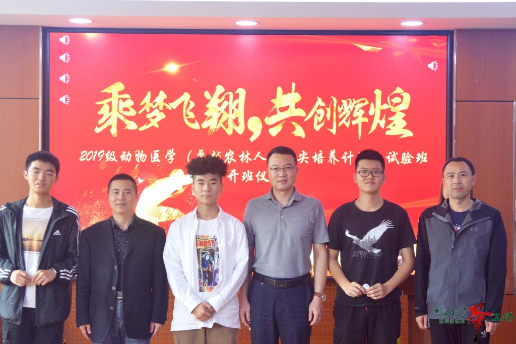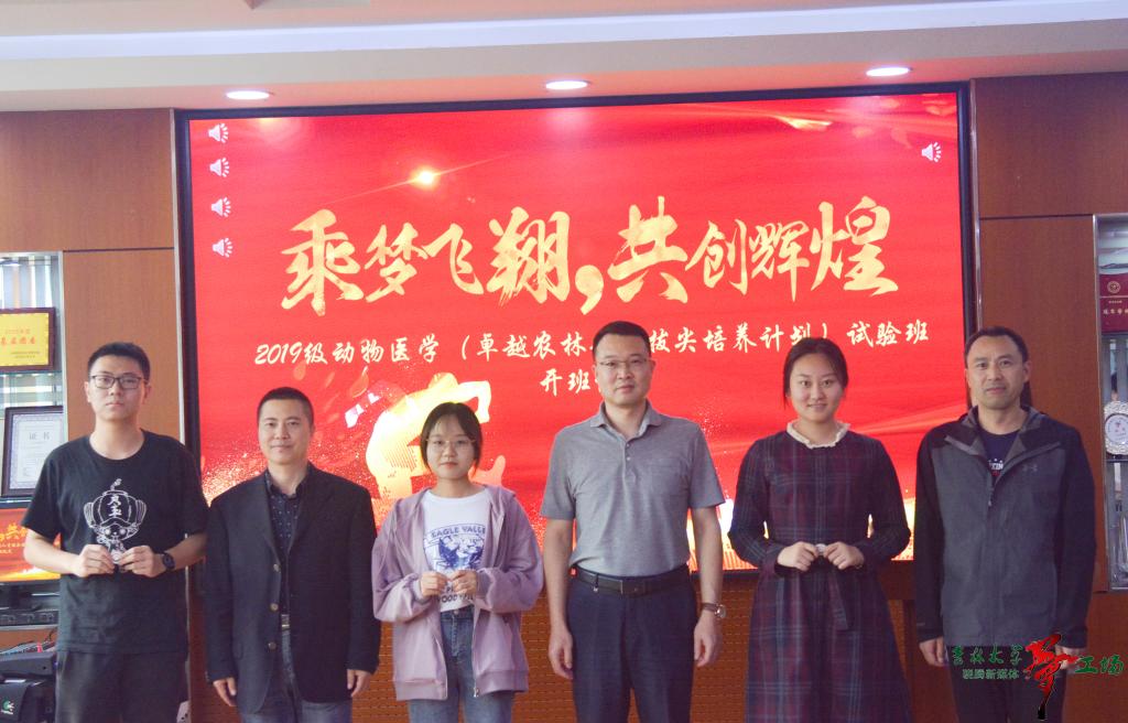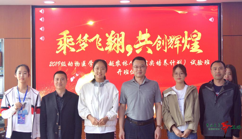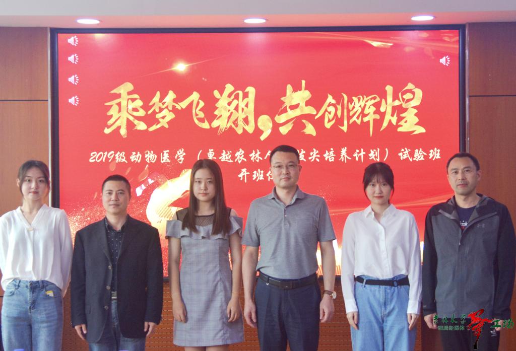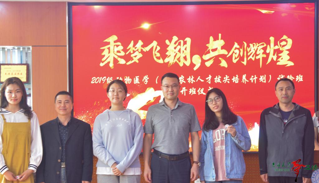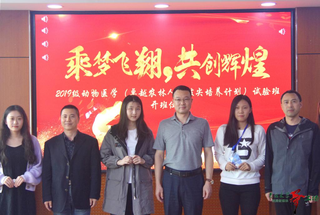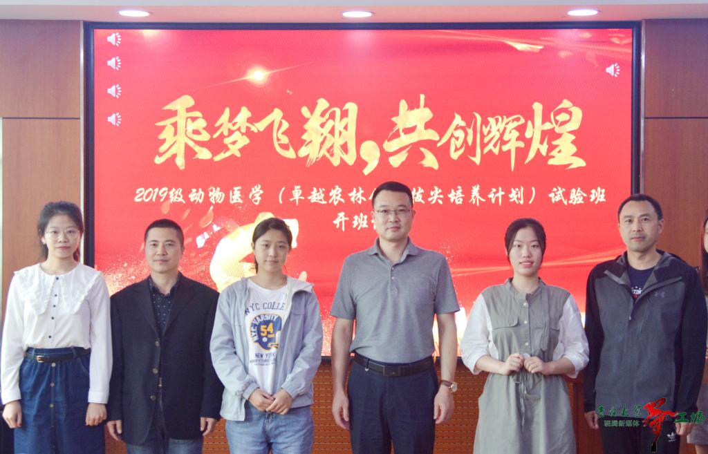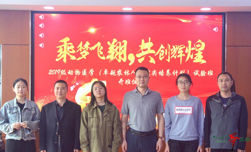 “动物医学(卓越农林人才拔尖培养计划)试验班”开班仪式。学院教学副院长贺文琦教授,党委副书记饶家辉教授,2019级试验班班主任张学明教授,教务办主任王宏娟老师,团学办主任谭瑶老师,2019级辅导员李娜老师,2014级试验班班长郝鹏飞学长,以及2019级试验班全体同学参加了此次仪式。开班仪式由2019级试验班王舒同学主持。