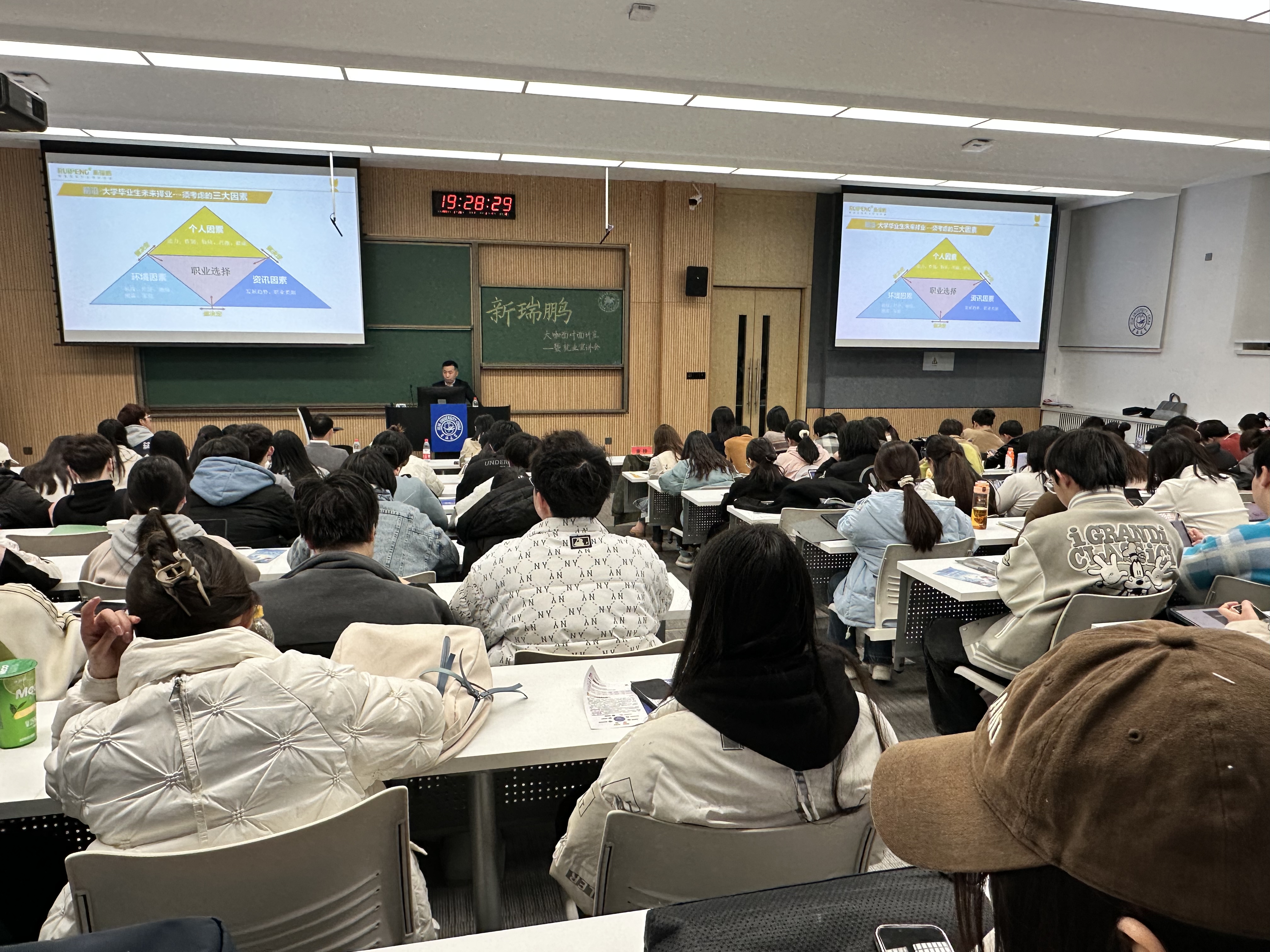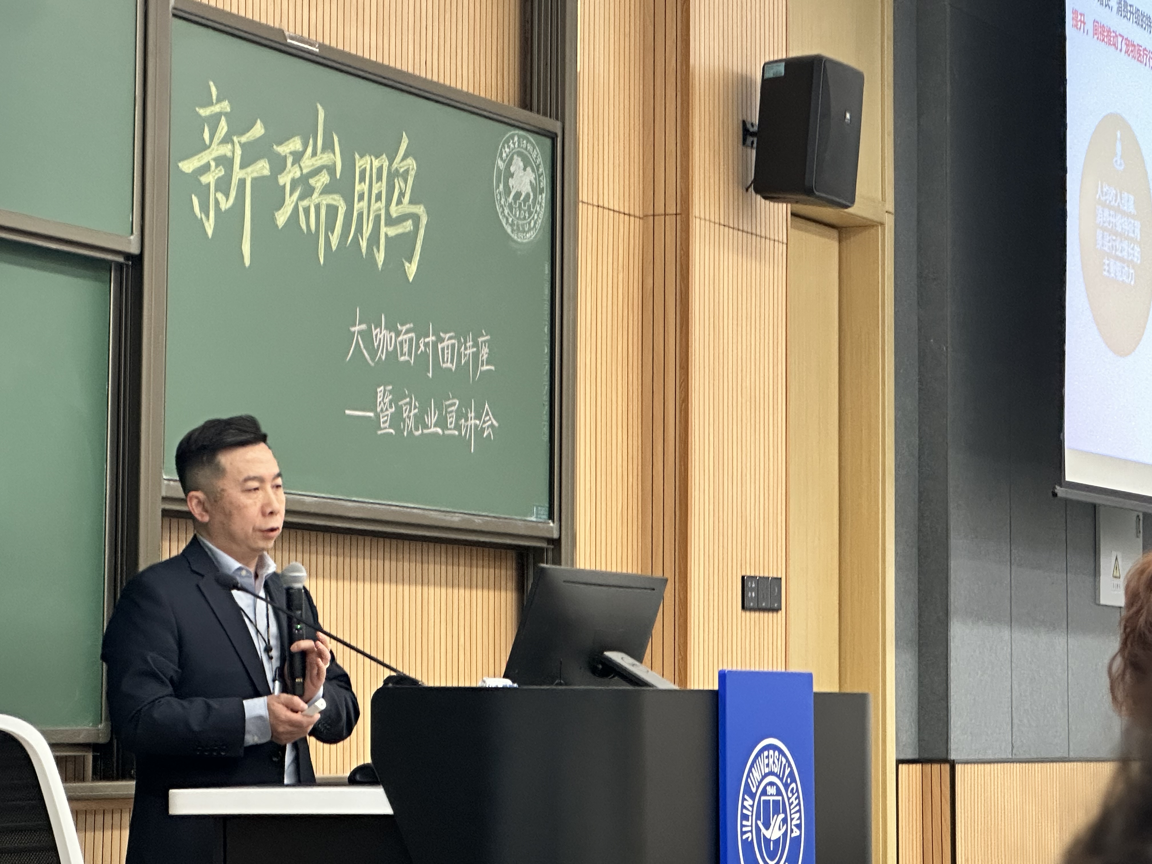 在和平校区科学讲堂100教室举办了“遇见新瑞鹏 遇见新未来”宠物医疗发展专题讲座暨就业招聘宣讲会,活动特邀主讲嘉宾为新瑞鹏集团副总裁董轶,新瑞鹏集团招聘经理李娇、校企合作专业经理宋辉,学院党委副书记秦明、辅导员李娜、祁庆恢等人共同出席了活动。学院2020级全体本科生、2021级部分本科生参加了活动,活动由2019级学生项露莹主持。