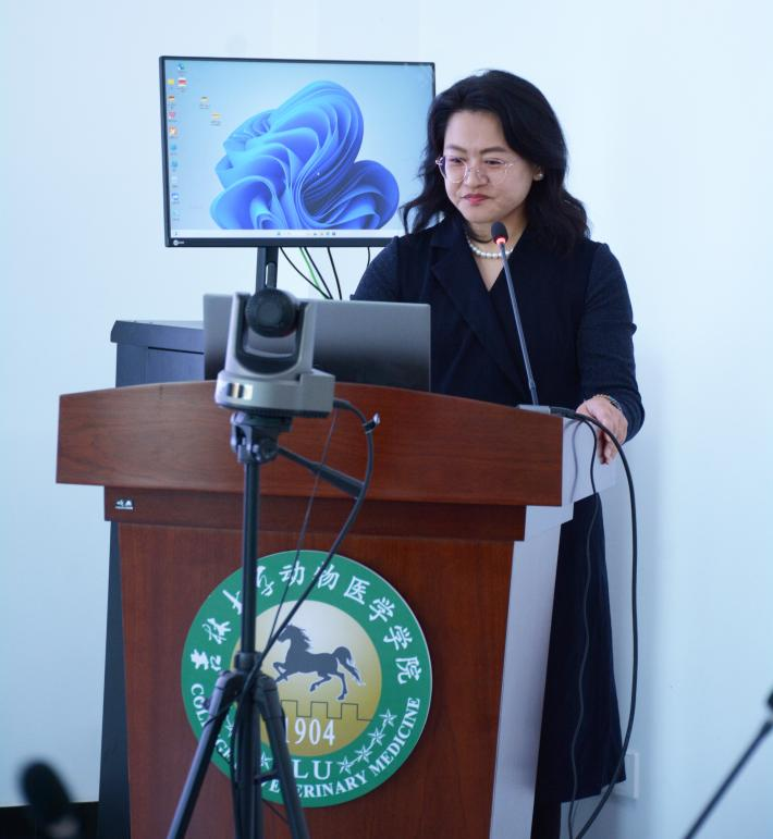 的历史与发展。她指出,学院致力于培养高层次的兽医学人才,为国家的动物医学事业贡献力量。学院教授冯新、胡盼、杜希良、张巧灵,分别介绍了预防兽医学、兽医公共卫生学、临床兽医学、基础兽医学的研究方向、师资力量、研究生毕业去向以及各研究室的团队成员和科研成果等情况,同时对报考要求、学院文化建设、生活条件等方面内容进行了详细说明。宣讲过程中,老师与同学们充分互动,细致耐心回答了同学们关心的培养过程及就业前景等方面的相关问题。