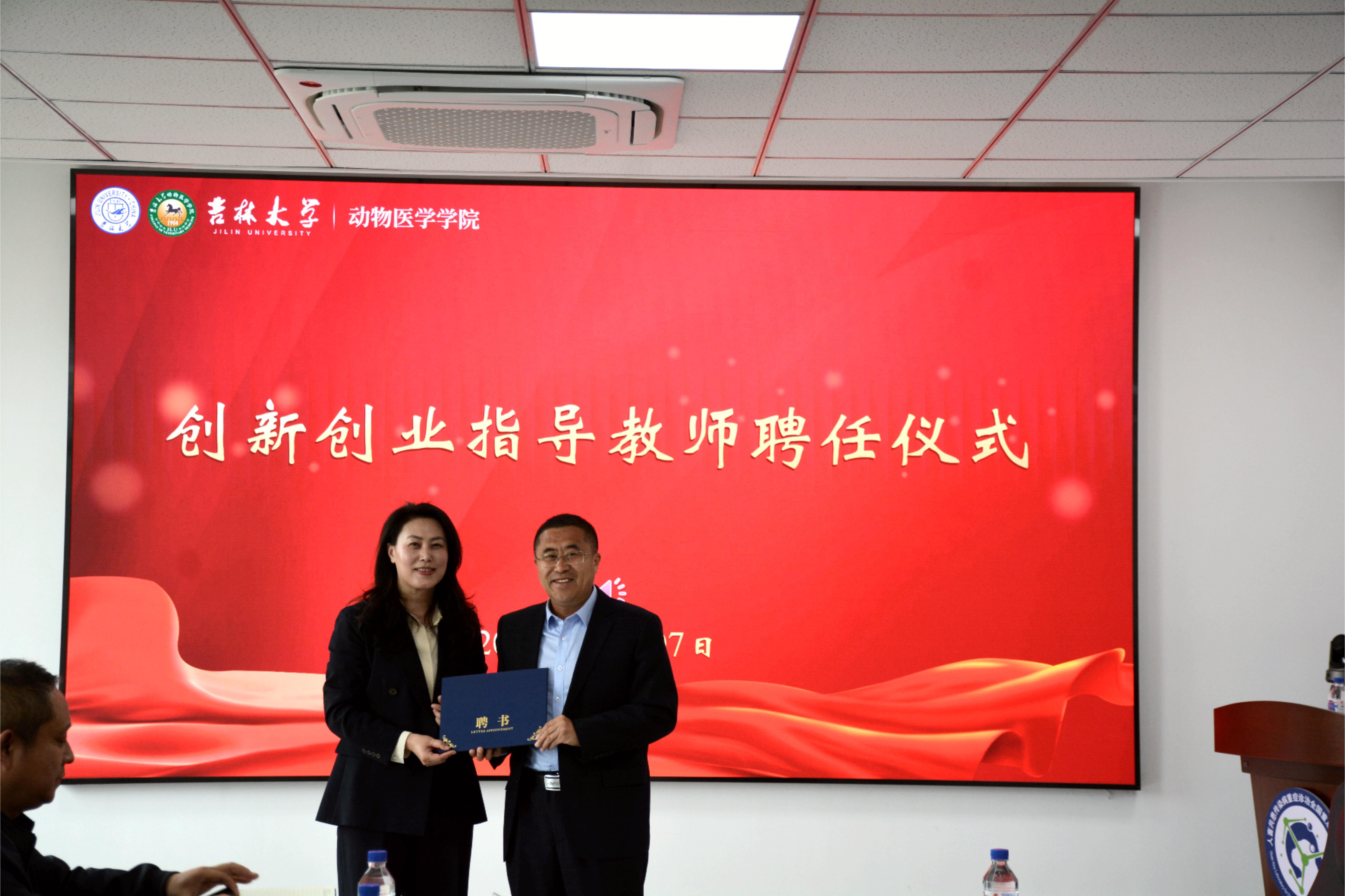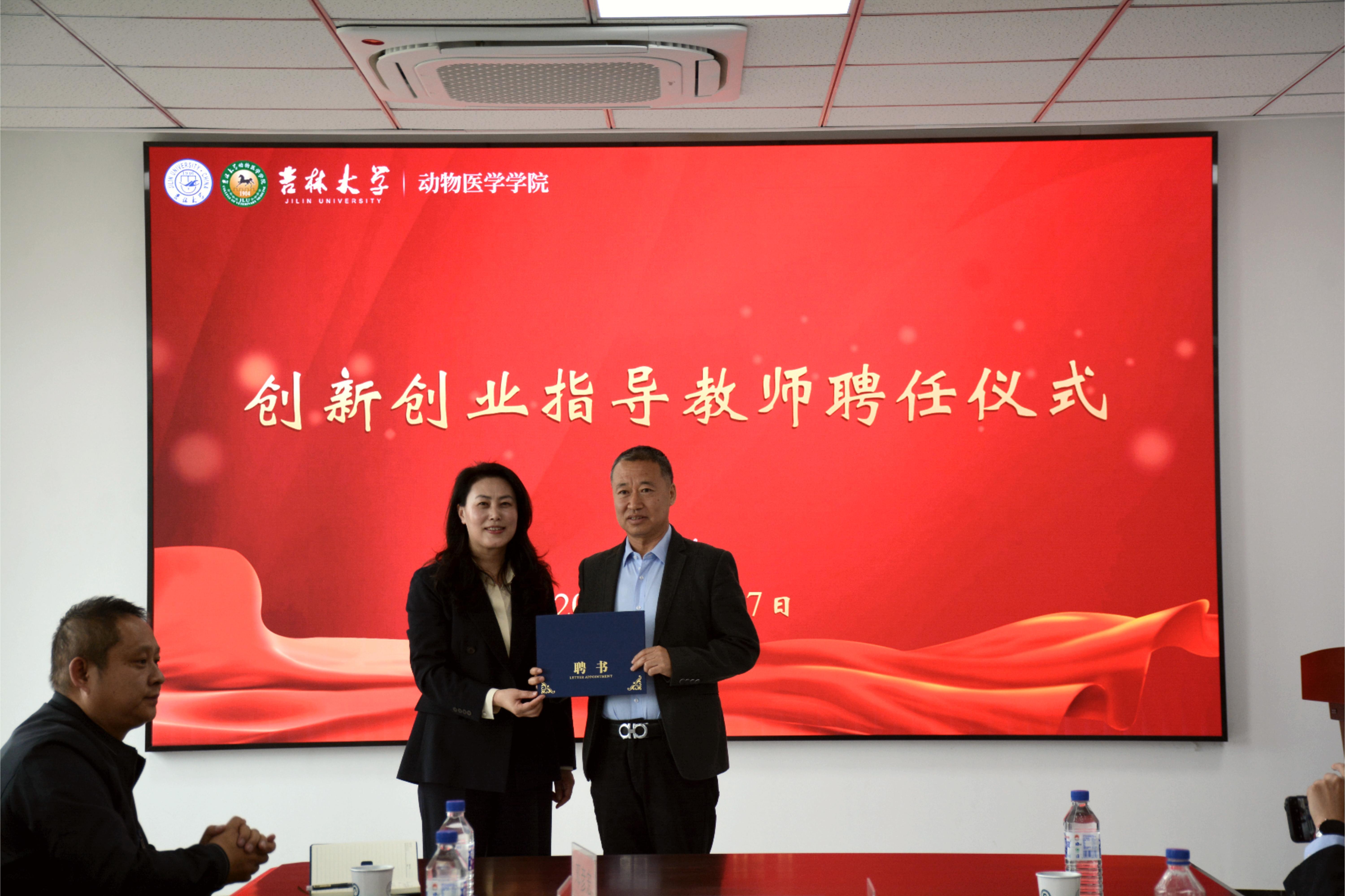 随后,李建华院长对参加本次简要介绍参会人员并致欢迎词,代表学院颁发创新创业指导教师聘书并合影。座谈会上,李建华院长指出,深化“四链融合”是新时代高等教育与产业协同发展的必然要求。学院依托教育链基础优势,近年来在兽医学、人与动物共有医学等领域构建了特色学科体系,并通过“产学研用”一体化模式,推动人才链与产业链精准对接。与中升挑战生物科技的合作,将有效贯通从基础研究到产业应用的创新链,实现资源互补、价值共创。刘海余总经理高度认同“四链融合”理念,并强调企业作为产业链主体,亟需高校在技术研发与人才供给上的支持。“公司当前在动物疫苗、新型兽药等领域的产能升级,离不开创新链的源头活水和人才链的持续赋能。此次合作将加速技术成果从实验室走向生产线。”